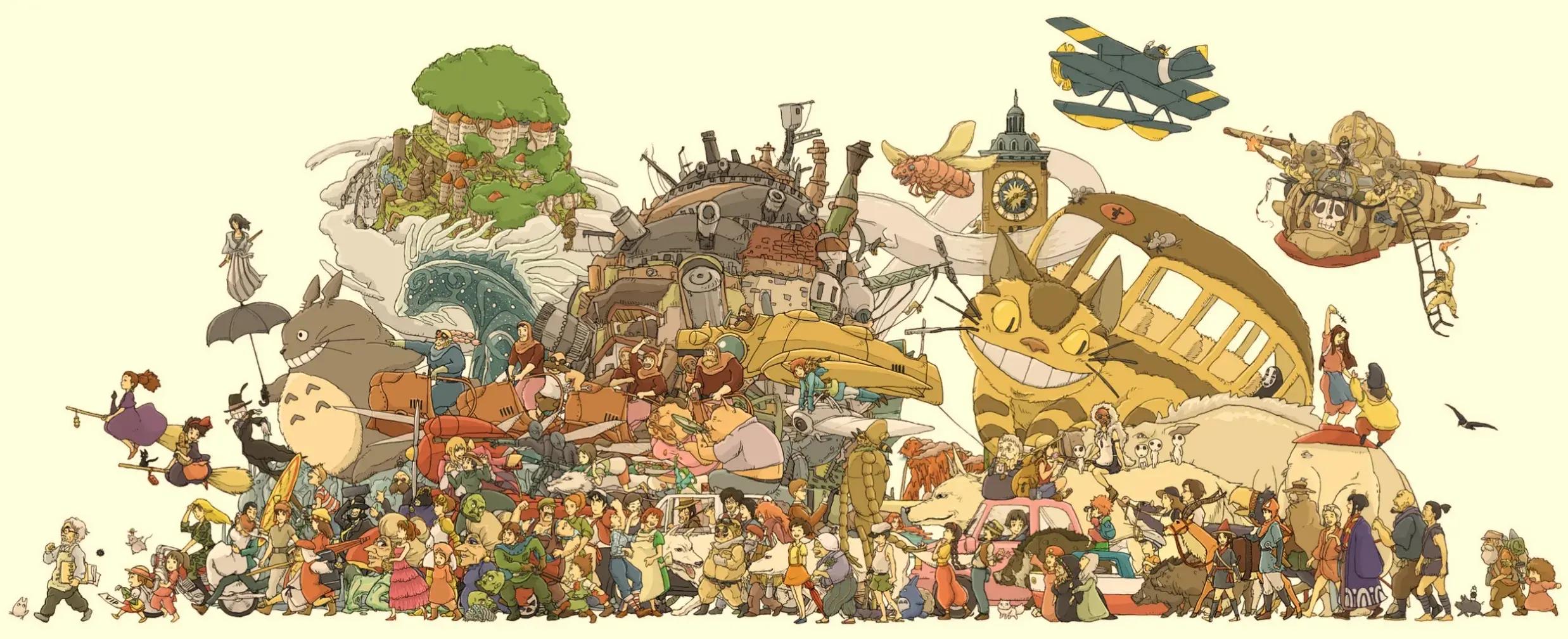 每个人心中都有一个吉卜力,或者说每个人心中都有一个宫崎骏,我觉得有些人就是在某些地方有天赋,很奇怪,他的东西就是按照他的方式搞的,但是却莫名符合大部分人的欣赏水平,戳到了大家的那个点,可以说吉卜力或者说宫崎骏就是这么一个有天赋的人,一个小女孩,一个保护她的男孩子,就构成了他的一个基本模式,别人却学不去。还有里面的音乐,也是非常贴切适合且感人的,就好比天空之城,这么多年过去了,我听了仍然很沉迷,丝毫不觉得那是上个世纪的东西。这是由一两个核心人物主导,许多工作人员共同协作产出了许多跨时代东西的年代,未来也可能不会有这么有质感且深入人心的大量作品了,有空静下心来就看看吧,总会找到自己放松的一片小天地的。而且每个人总会在这些童话般的故事里找到自己最喜欢的那个故事,就好比《千与千寻》虽然是票房之最,但我看了很多遍了,我心里在这个合集里它还是排不到前十,吉卜力的好片子太多,希望你也能在里面找到喜欢的故事。